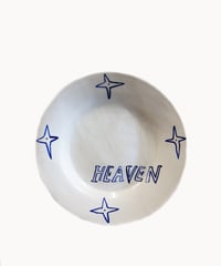 White stoneware, handbuilt plate. Decorated with cobalt oxide and finished with a transparent gloss glaze.